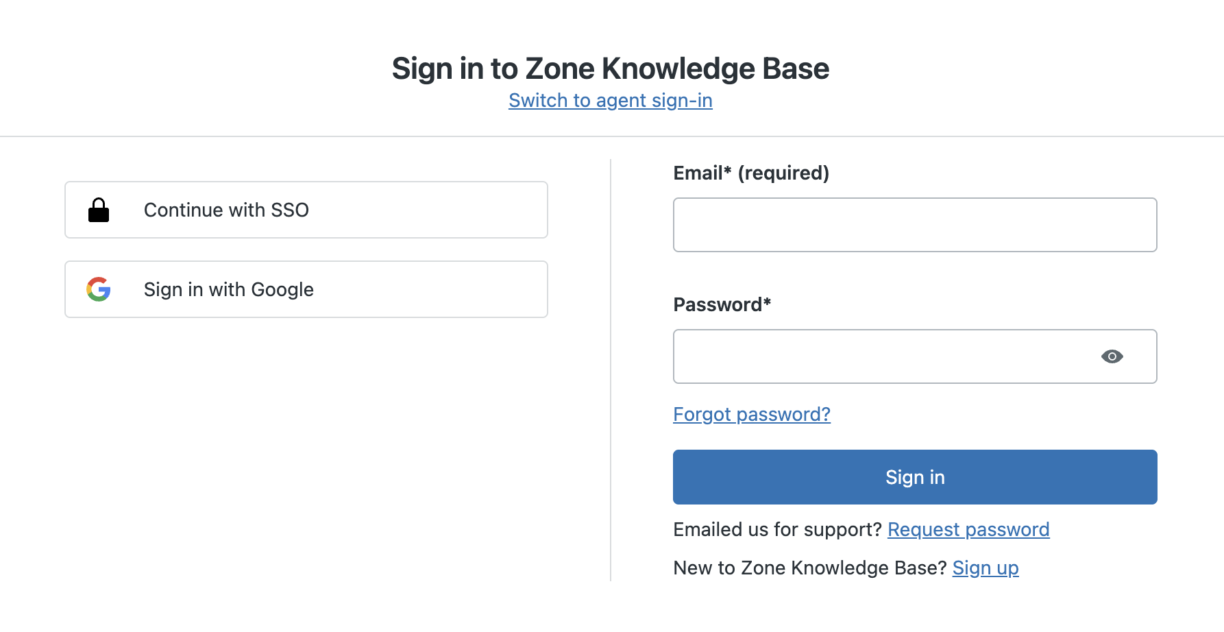 1. Navigate to help.zoneandco.com. In the upper right-hand corner, click on the "Sign in" link.